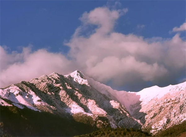 鶴慶 九鼎山純白色的積雪覆在山巔,從山下往上看,像是純色冰淇淋一樣誘人。積雪與小城交相輝映,雪山上的白與小城里白族民居的白墻竟是異常和諧!