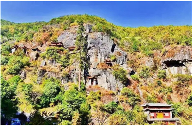 山上山巖嵯峨,松林蒼翠。峭壁上,歷代名人的題字高鐫于上,道勁雄渾、氣勢(shì)非凡。旅行家、地理學(xué)家徐霞客也因“愛(ài)其幽靜,為息閣中作記半日”,在此流連忘返,寫(xiě)下膾炙人口的游記。