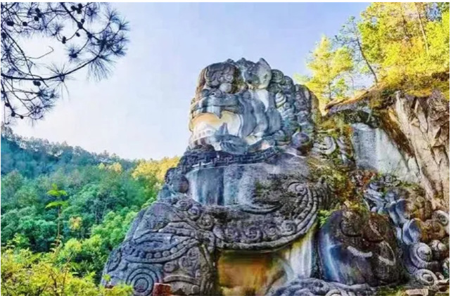 除此之外,還有高25米、長(zhǎng)15米、寬12米的“千獅王”,為國(guó)內(nèi)外罕見(jiàn)的石雕巨獅,被雕刻在海拔2780米的千獅山(滿賢林)懸崖峭壁主峰的天然大巖石上,是目前全世界體積最大的獅子。