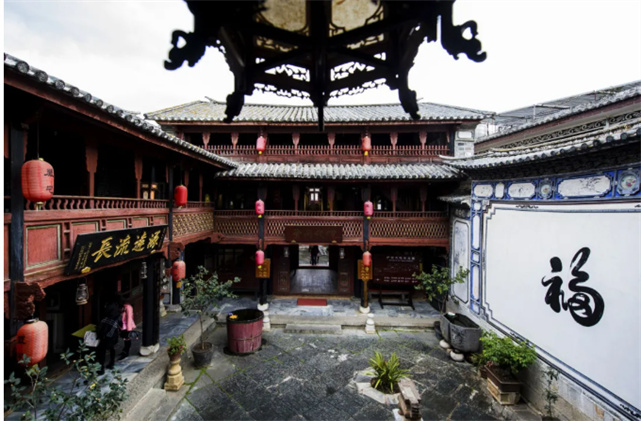 在喜洲古鎮(zhèn),隨處可見的老宅極具白族特色,“三坊一照壁”“四合五天井”“一進兩院(六合同春)”“走馬串角樓”的白族庭院格局,坐西向東的白族民居古色古香,古建筑煥發(fā)著新的活力。