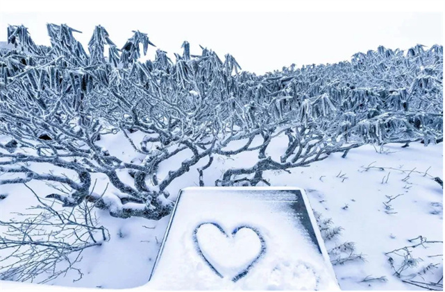 繼續(xù)向上云霧散開到達洗馬潭景區(qū)銀裝素裹的世界映入眼簾。