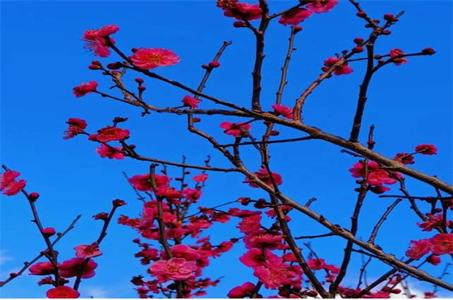 在永平縣博南鎮(zhèn)花橋村,其間有800多年歷史的古道元梅,其充滿滄桑卻又蒼勁有力的枝干,不經(jīng)意間,便給你傳遞著歷史的厚重感。古道元梅,吸引了無數(shù)畫家到村寫生,也促進了“中國梅花精神文化論壇”在永平縣舉辦。“梅蕊臘前破,梅花年后多”,立春時,團山公園的梅花齊把春意鬧,紅梅如火、白梅勝雪,初春之梅的飽和色彩,帶給公園一派春意盎然氣象。