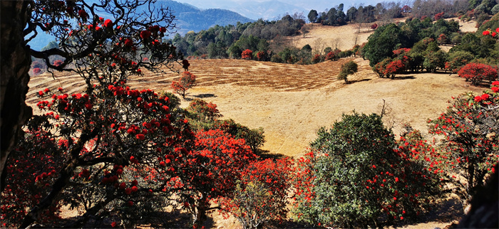云南省大理白族自治州漾濞彝族自治縣官房坪的杜鵑花,每年三、四月份開放,花開時(shí)節(jié),紅色占據(jù)了整個山坡,映紅了蒼山西坡的溝溝壑壑。