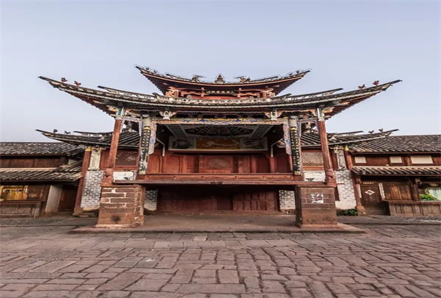 古戲臺也是寺登四方街上最有特色的建筑,戲臺帶有魁閣,建于清嘉慶年間,后面經(jīng)過五次修繕。