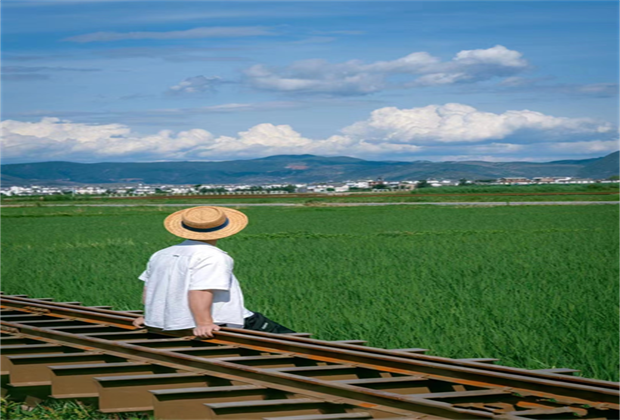 23℃的大理是綠色的,坐在喜洲稻田旁,