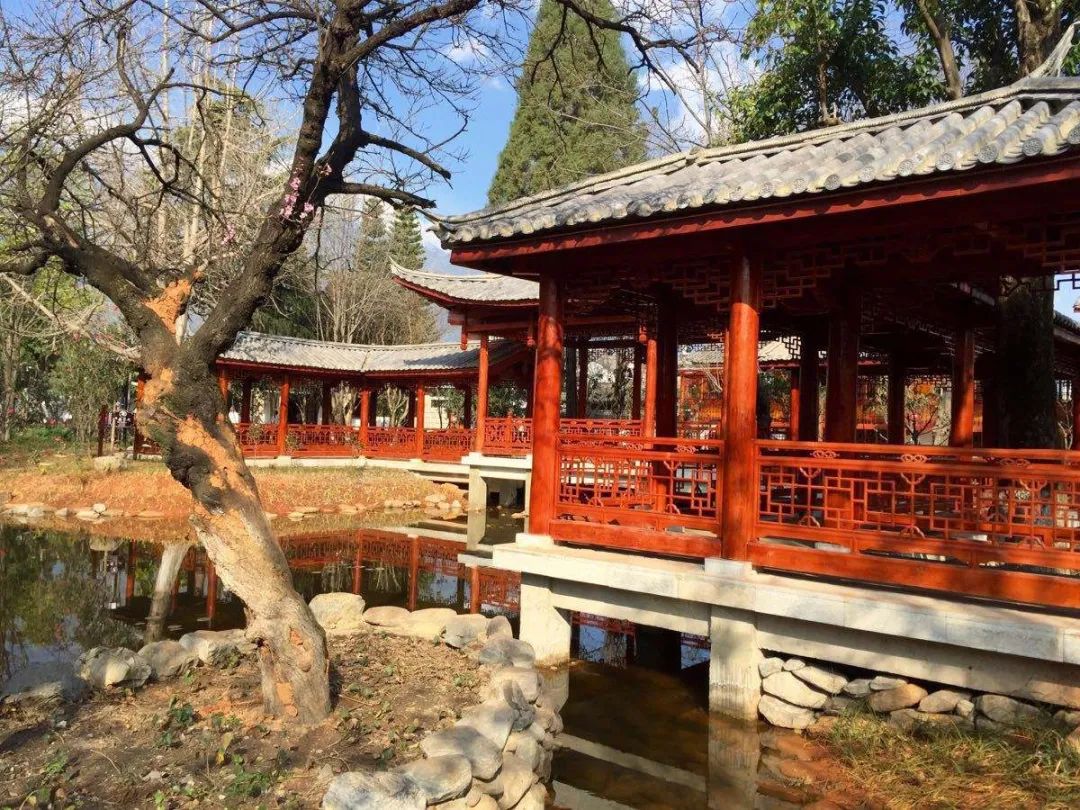 零星的建筑與池水相映,而草坪上的古本名樹在微風中輕輕搖曳。茶花、櫻花、牡丹、杜鵑、梅花、月季,一年四季交織出絢麗的色彩,如同大理的多元文化。中間的一棵高大的榕樹,猶如一把庇護的傘,將陽光透過樹葉的縫隙灑在地上。榕樹下,老人們靜靜地坐著,享受著午后的寧靜。落葉季節(jié),榕樹葉紛紛飄落,就像是大自然為這片神秘花園鋪上了一層金黃的地毯。這座園林,宛如一首詩,每一處都是一句句優(yōu)美的詩句。公園里環(huán)境優(yōu)美,座椅隨處可見,好似在邀請著游人坐下,靜享這一片寧靜之美。學生們中午在這里用餐,下午做作業(yè)、聊天、下棋、玩耍,形成一派歡聲笑語的場景。古老的石碑在廊間若隱若現(xiàn),它是時光的見證者,講述著大理的歷史故事。