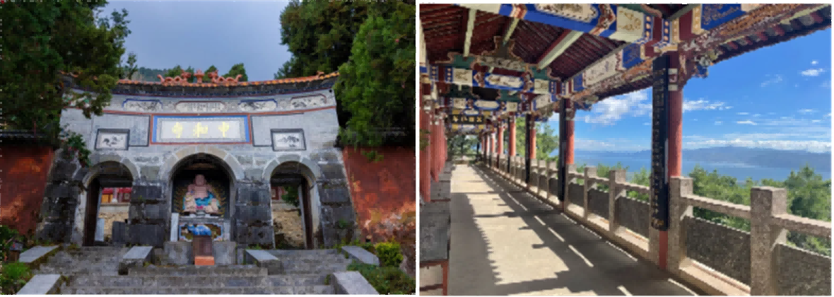中和索道是路途最短,最為幽靜的一條線路,卻也最為驚險(xiǎn)刺激,敞篷小纜車,一路感受林海濤濤,山風(fēng)佛面。中和索道盡頭位于“中和寺”所以得名“中和索道”。這一條索道不同于感通索道和洗馬潭大索道,因?yàn)橹泻退鞯赖霓I廂不是全封閉式的,而是兩人座開放式索道,可以很直觀的感受到空氣中的涼意和懸空的感覺。因?yàn)槭情_放式露天吊籃索道,坐在索道上可以將大理洱海和蒼山間的這一片空地上的布局瞧得一清二楚,加上路程短,所以這一條索道可風(fēng)雨無(wú)阻的體驗(yàn)蒼山美景。中和索道除了索道上可以觀賞美景,在索道的盡頭還有一座在大理很有名的寺院——中和寺,它位于蒼山十九峰的中心山峰山上。中和寺地處蒼山中和峰東麓,擁有得天獨(dú)厚的自然風(fēng)光和地理位置,寺廟依蒼山山勢(shì)而建,四周蒼翠蔥郁,松林環(huán)繞,身處其中能感受到大自然的靜謐和諧,與道教追求人與自然和諧相處的理念相得益彰。中和寺看似不起眼,但是它的歷史文化非常悠久,它的源頭可以追溯到唐代的南詔國(guó)時(shí)期(公元738年~902年),經(jīng)歷了多個(gè)朝代的修葺與重建,明代嘉靖年間曾得到大規(guī)模修繕,在清代受到官方高度重視,清朝康熙皇帝曾為中和寺題寫了“滇云拱極”的御賜匾額,進(jìn)一步提升了中和寺在大理乃至整個(gè)中原地區(qū)的文化地位和社會(huì)影響力。不幸的是,在清咸豐年間寺廟遭受了嚴(yán)重破壞,后來(lái)在光緒年間又進(jìn)行了重修?,F(xiàn)保護(hù)下來(lái)的凌霄寶殿、正大殿和聚仙樓依舊保持著清光緒二十六年重修中和寺時(shí)的建筑風(fēng)格。