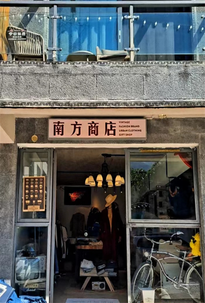 臨近古城床單廠藝術(shù)區(qū),蒼坪街新開一家潮牌衣飾與古著的混搭新店- 南方商店。主營(yíng)風(fēng)格潮牌、街頭風(fēng)、阿美咔嘰等偏美式的衣物。店主將多年珍藏的寶物搬進(jìn)店里,坐鎮(zhèn)小店,比如科比球衣,這不僅僅誘惑著復(fù)古控還有球迷。店門口陽(yáng)光極好,古榕樹就在近旁,從一塔路和復(fù)興路都可以沿著小路到達(dá)這個(gè)隱匿的,南方商店。