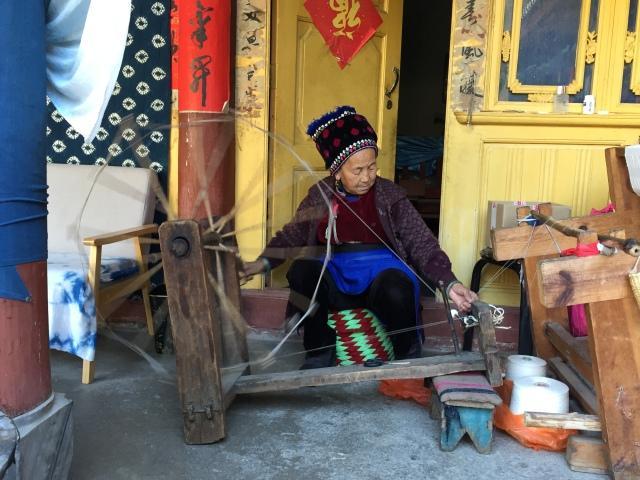 “藍(lán)續(xù)”,周城里一個(gè)很棒的扎染小院,主人小白取名“藍(lán)續(xù)”,源于她是周城人,在村里隨便找個(gè)人都會(huì)這門手藝,村中老人用針扎出來的線條,就像畫出來的一樣均勻等比,而且這里的人天生對(duì)扎染有欣賞水平。這種用一針一線扎出的花,和用板藍(lán)根染出的布,小白愿意稱呼它為“周城藍(lán)”,她要做的,就是用古法延續(xù)這種藍(lán)。