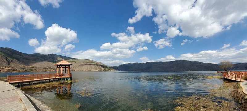 茈碧湖位于云南省大理洱源縣東北部,距洱源縣城約3公里,距大理以北73公里,距離劍川石寶山風景區(qū)以南58公里。東、北靠山,西南連田,南北狹長,是高原斷陷溶蝕洼地形成的天然淡水湖泊,是洱海上游的主要湖泊之一,也是洱海的源頭了,鄧川壩子的灌溉水源主要靠它。