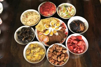 在鶴慶,但凡婚喪嫁娶,均以八大碗宴客。八仙桌上,八碗喜抱一座盤(pán),好吃好看又寄托著白族人家對(duì)生活的種種解讀,有著深厚的飲食文化內(nèi)涵。