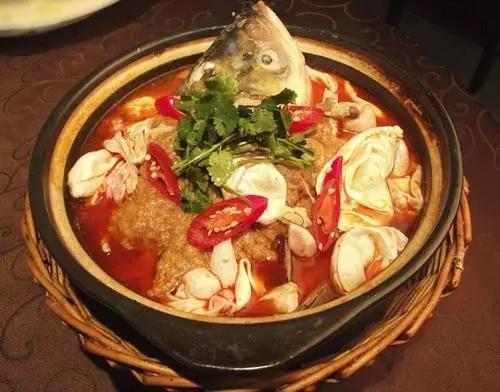 砂鍋魚,是云南省大理白族自治州的特色美食。砂鍋魚是選用好的砂鍋為器具,以玉蘭片、火腿片、鮮肉片、嫩雞片等原料墊底;將鮮魚剖腹洗凈,抹上少許精鹽,腌十多分鐘,放入砂鍋,然后加上湯,放在木炭火上用微火燉熟,再配以豆腐片、胡蘿卜、白菜心等即可。食之味道鮮美,清香撲鼻。