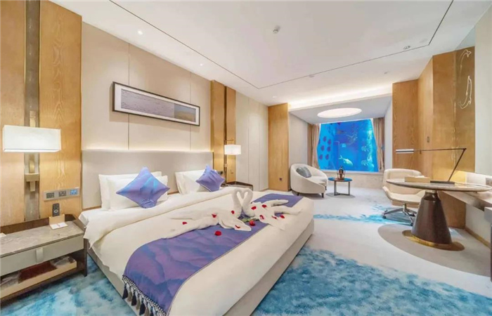 酒店位于云南省大理白族自治州海東大理海洋城,背靠大理首座海洋主題公園——大理海洋世界。酒店有23間海底景觀房,一、二、三層客房直接面向11000噸(水深11.5米)魚展池的水下景觀,四層可俯視壯觀的鯊魚池水面,可零距離觀賞千姿百態(tài)的遠(yuǎn)洋奇觀,可體驗鯊魚池潛水、潛水培訓(xùn)、水下求婚及水下婚禮等特色服務(wù)項目。