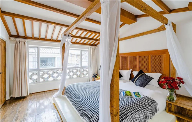 名為“南詔樂(lè)韻”的房間內(nèi),床頭擺放著一架歷史已久的古箏,桌上是一個(gè)大大的手鼓。尋一個(gè)秋冬的溫暖下午,隨意坐在榻榻米上,窗外金黃的銀杏葉伴著古樂(lè)聲輕舞飛揚(yáng),心中的萬(wàn)千愁緒隨之化為青煙。