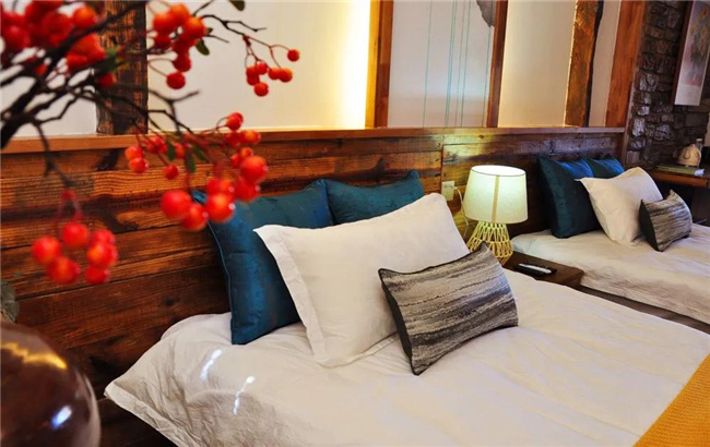棲園的客房分上下兩院,上院是環(huán)水的單層四合院,分別以中國(guó)古老的十二個(gè)月名字命名,不同的房型風(fēng)格各異,充滿色彩感和藝術(shù)氛圍。