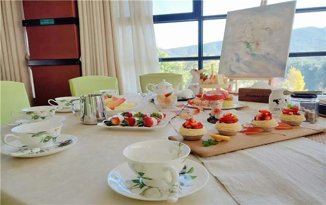 沐著山間清新的空氣醒來(lái),開(kāi)始用心地享受一頓早餐。午后,慵懶地倚進(jìn)沙發(fā)或躺椅,細(xì)數(shù)垂落的爬山虎,還有紫藤架下灑進(jìn)的陽(yáng)光,伴著鮮花的沁香品一壺茶,或是跟莊園的女主人聊聊她的那些畫(huà)。