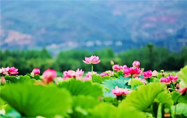 “接天蓮葉無窮碧,映日荷花別樣紅?!柄Q慶草海濕地,紅了片片荷花,綠了田田荷葉,十里荷塘滿池香。撐一支小船去往荷花深處,任船在水上行,人在畫中游。