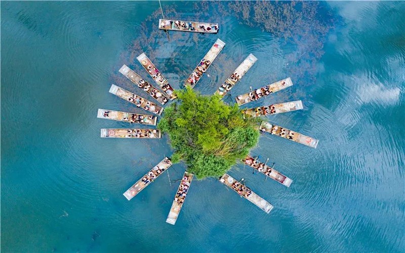 穿一襲古代婚服,泛舟湖上,吟詩(shī)作對(duì),把酒言歡,談笑歡宴,徜徉在黃龍?zhí)兜男沱愶L(fēng)景里,感受大理初夏別樣的情趣與靈魂共鳴的美妙。