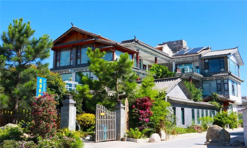 在大理龍龕龍下登村環(huán)海西路邊,有一家名叫“墨?!钡目蜅?,擷取“蒼山不墨千秋畫,洱海無弦萬古琴”的詩意,坐擁山海,青瓦白墻,古樹臨窗,與自然融為一體。