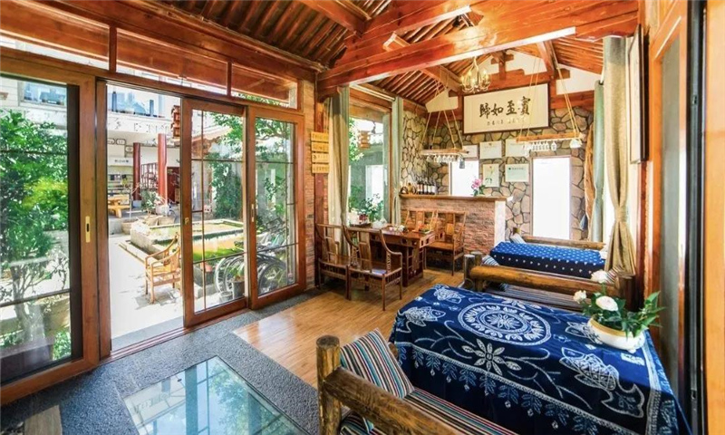 墨??蜅R还灿?4間房,每個房間的取名均來自蒼山十九峰和十八溪,比如“滄浪”“圣應(yīng)”“清碧”等,充滿了詩意。