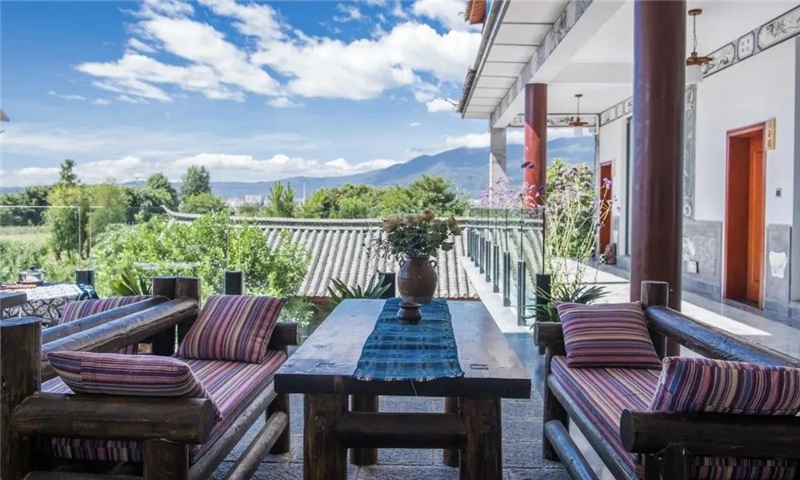 坐在客棧的露臺,映入眼簾的是遼闊的田野和洱海碧波。飲上幾杯清茶,抬頭看云飄過,和輕拂的微風(fēng)說幾句悄悄話,好不愜意。直至傍晚時分,看一場蒼山日落,任神思飛至天外,愁慮盡消。