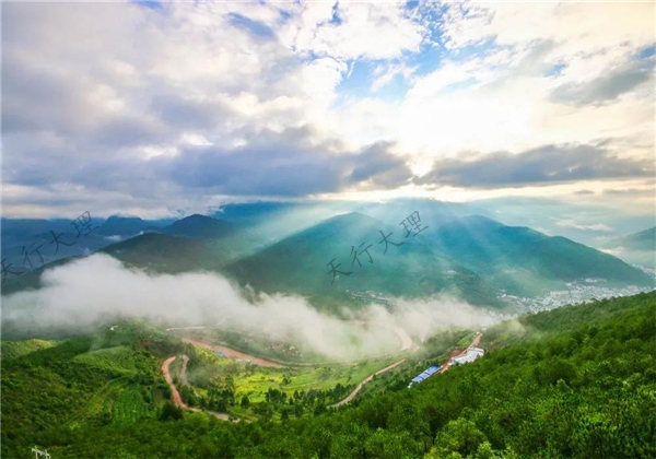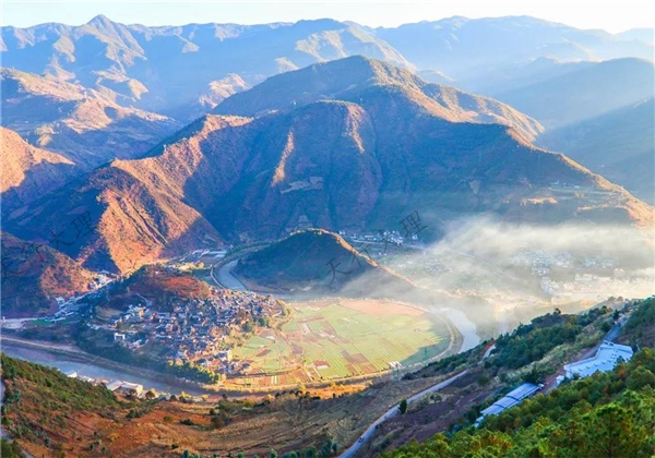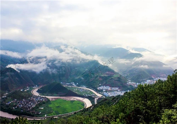 在云龍縣城北面,沘江蜿蜒而來,繞出了一個(gè)“S”型的水灣,構(gòu)成了一幅類似“太極圖”的天然地貌圖景,被譽(yù)為“世界奇觀,云龍?zhí)珮O”。
