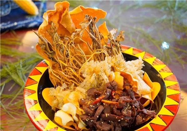 蒙舍詔“香煎匯”:油炸香椿、韭菜根、豌豆粉皮、浪穹詔油淋羊干巴