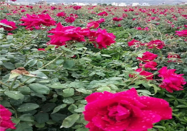 陽(yáng)光照耀在玫瑰花上,發(fā)出耀眼的光芒,向四面八方發(fā)散,將天地照亮。面對(duì)如此壯闊的玫瑰花海,不由得讓人心中發(fā)出由衷的贊嘆:從沒(méi)見(jiàn)過(guò)如此大面積的玫瑰紅,從沒(méi)有見(jiàn)過(guò)如此深顏色的玫瑰紅,從沒(méi)有見(jiàn)過(guò)如此跌宕起伏的玫瑰紅。如此跌宕起伏的玫瑰紅可以從4月初一直到12月。