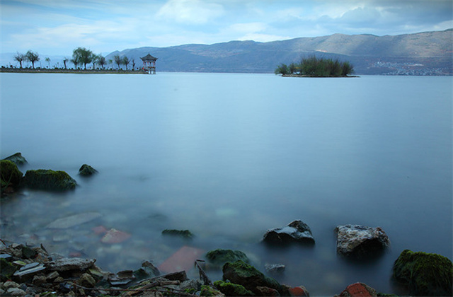 洱海月濕地公園最美的地方就是長(zhǎng)滿(mǎn)水草的走廊,還有洱海邊上的石頭灘,在那里拍風(fēng)景特別好看。