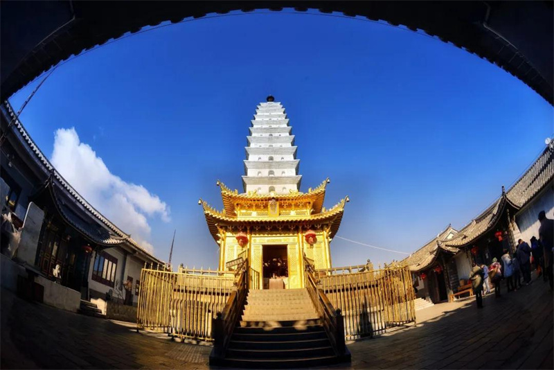 洗心橋,這是前往雞足山的必經(jīng)之路。從洗心橋上走過(guò),洗盡鉛華,放下內(nèi)心的貪、嗔、癡、慢,駐足橋上,愜意悠悠,遠(yuǎn)眺金頂寶塔,盡收沙址田園風(fēng)光,怡然自得。