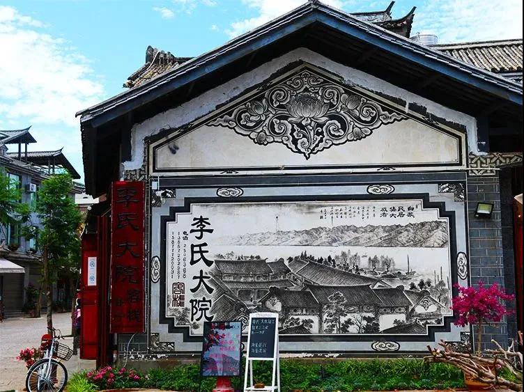 李氏大院是白族傳統(tǒng)民居“四合五天井”的典型建筑,有大門,后門,四方有四幢樓房合在一起,每兩幢房之間有一小天井,院心為大天井,共有五個天井,大門為三滴水造型,雕梁畫棟,飛檐翹角,彩畫以文房、詩書、花鳥、山水、蟲魚為主,充分體現(xiàn)房主人的意愿和家風(fēng)。