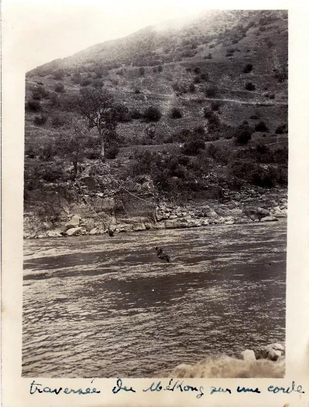 1934年,Subervie神父和他的驢子要到朱苦拉村需要從單繩索過湄公河(瀾滄江段)。