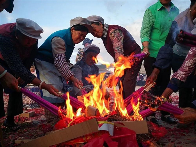 在云南省大理白族自治州,火把節(jié)是每一個(gè)大理人心中割舍不了的鄉(xiāng)愁,無(wú)可替代。彝族火把節(jié),于每年農(nóng)歷六月二十四日舉行,主要活動(dòng)有點(diǎn)火把、打歌狂歡。按習(xí)俗,當(dāng)天要把出嫁的姑娘接回來(lái)過(guò)節(jié)。白天,家家戶戶都要?dú)㈦u、宰羊,置酒肴敬奉天地,以求人、畜、莊稼順?biāo)?。晚上,點(diǎn)燃火把以示豐收喜慶。