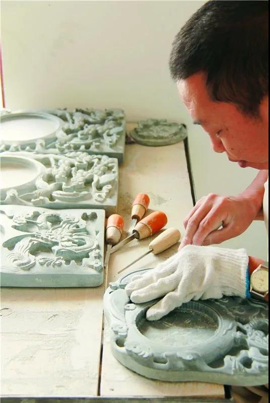 出生在制硯世家的張躍堂耳濡目染,從小就對工藝十分感興趣,放學回家畫圖畫,為制硯打下堅實基礎(chǔ),后來他用5年時間便“出師”了。以50年為一代算來,鳳羽硯傳到張躍堂已經(jīng)是第8代,至今已有300多年的歷史。