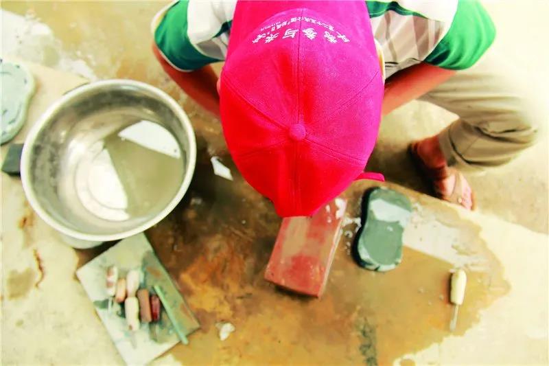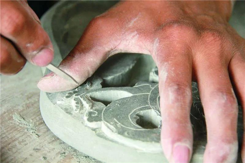 精細的雕刻與打磨過程最考驗制硯人的工藝,也需要耗費大量的時間,要經(jīng)歷“粗雕——粗打磨——細雕——細打磨”4個工序。“一刀準、二刀狠、三刀平、四刀細”是雕刻的口訣?!耙庵赶碌兑珳?,去除冗余石材,力道不能過輕或者過重,刀工要細膩精致?!睆堒S堂介紹,為追求造型和線條的流暢,一方普通大小的硯臺需要用砂紙細致地打磨半天,但這還不是最難的?!白铍y的是微雕,要求把硯臺上最微小的細節(jié)處理完美,例如人物的眉毛、胡須、衣紋,務(wù)求生動細膩?!?br />
