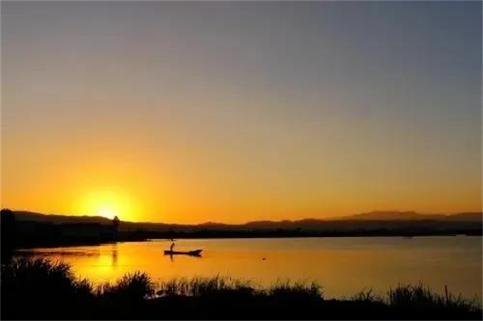 置身洱源西湖,仿佛置身一個(gè)神秘的天國。除了風(fēng)聲、歌聲、鳥聲,整個(gè)西湖闃寂無聲。秋日的余暉輕輕拍打著它,它仰天向上,把神秘的幸福密碼深壓在身下。“湖光蕩漾幾回紋,漁父歌聲鬧水濱,信口舢敲湘漢句,斷腸弄笛雁鴻云。三三對(duì)白煙蓑合,兩兩歸帆獲岸分。最趁夕陽含缺處,前村沽酒帶余醺?!痹谶@樣一幅背景中,偶爾還能看到牧童嬉鬧,大娘浣衣,村姑笑吟。