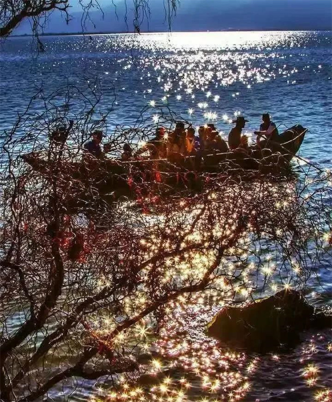 她是美麗的,毋庸置疑。清晨,她的波瀾就是她的名片,金燦燦的,像是甜蜜的心事。點(diǎn)點(diǎn)漁舟就是她的鞋子,穿著它們,她正去赴新一天的約會。漁人們帶著鸕鶿捕魚,這鳥兒不僅是捕魚的能手,還十分的有靈性。它們和漁人結(jié)伴而行,配合默契,它們就像是自由的精靈,跳著芭蕾,輕舞在碧藍(lán)的海面。