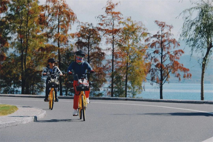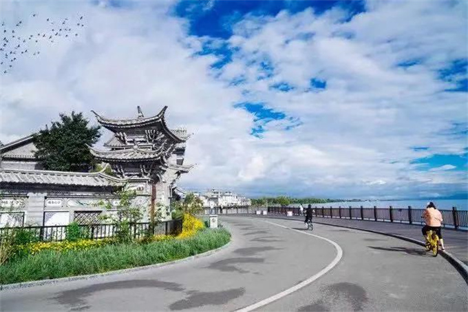 一路向前,左邊是大理特色的白族民居,右邊是湛藍(lán)清澈的洱海,騎著單車,呼吸著無比新鮮的空氣,人仿佛回到十八歲!