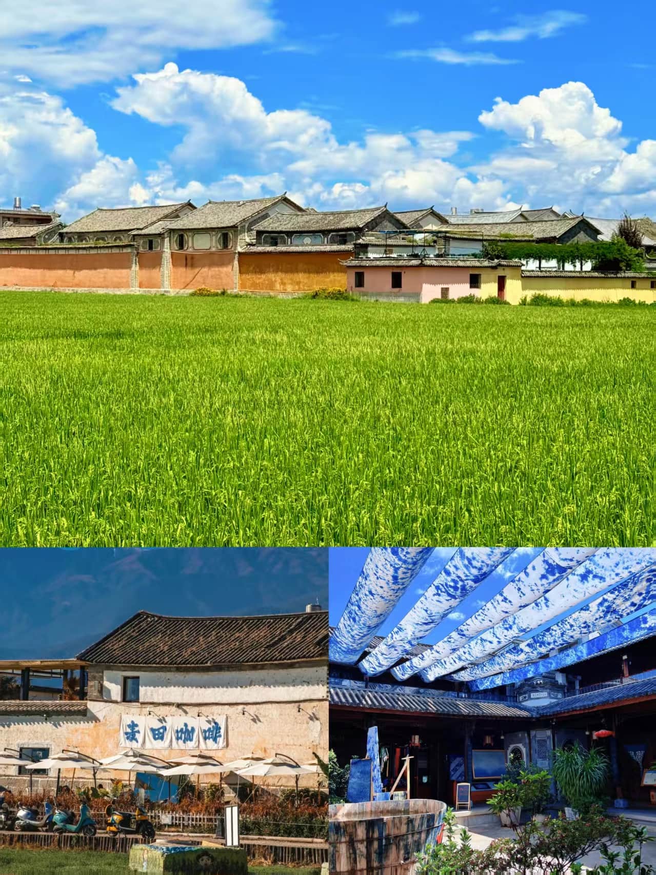 從大理古城向北22公里,喜洲古鎮(zhèn)以嚴家大院為代表的明清商幫建筑群,見證著茶馬古道的繁榮。這里的白族民居以“三坊一照壁”“四合五天井”為特色,雕梁畫棟間藏著白族匠人的智慧。而真正讓喜洲聲名遠播的,是國家級非遺——扎染。在璞真扎染博物館,游客可親手體驗用板藍根染布的古法技藝,將蒼山云霧、洱海波紋凝固成藍白相間的方巾。古鎮(zhèn)外的稻田里,小火車穿梭于金黃麥浪間,成為網紅打卡的“移動風景線”。