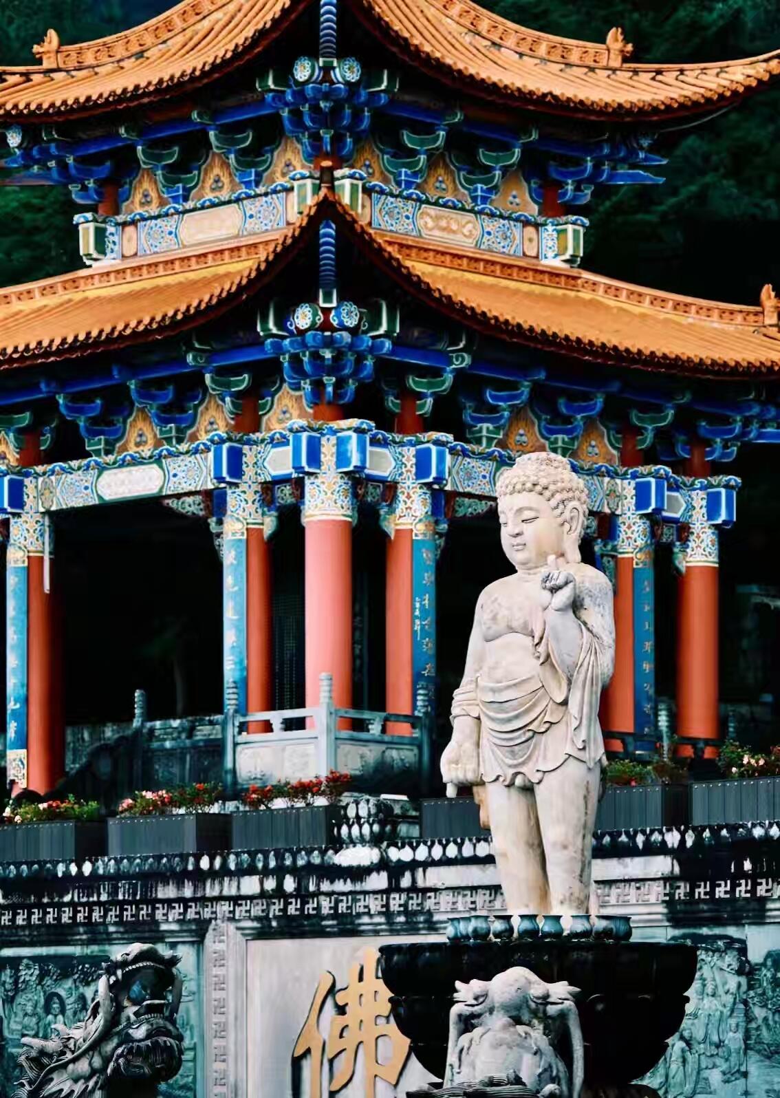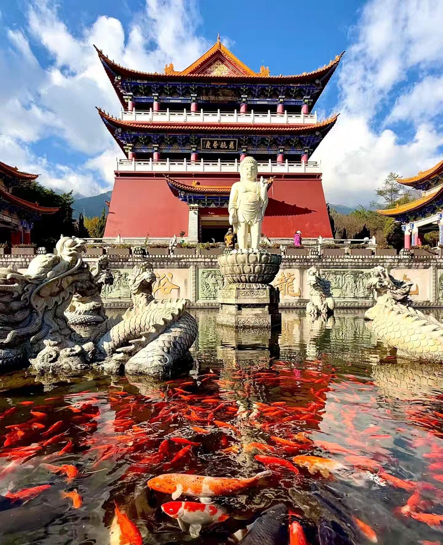 景區(qū)入口 → 乘觀光車至 大雄寶殿 → 九龍浴佛 → 雨銅觀音殿 → 鐘樓(看16噸南詔大鐘) → 步行下山經(jīng) 文物陳列館 → 三塔聚影池(必拍倒影?。?→ 出口
